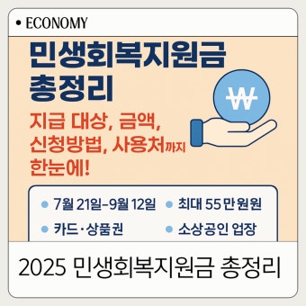 코로나19 시기 재난지원금처럼 전 국민에게 현금성 지원이 이뤄진다고는 하는데, 막상 들여다보면 복잡하게 느껴지는 부분들이 많아요. 특히 '민생회복 소비쿠폰'이라는 이름처럼 소비 진작과 지역 경제 활성화라는 목적이 강해서 사용처 제한도 있다고 하고요. 그래서 오늘은 이 민생회복 지원금 대상과 지급 규모, 신청 방법, 그리고 가장 중요한 사용처까지, 여러분이 궁금해하실 모든 것을 제가 꼼꼼하게 분석해 드릴게요. 이 글 하나면 모든 궁금증이 시원하게 풀리실 겁니다!