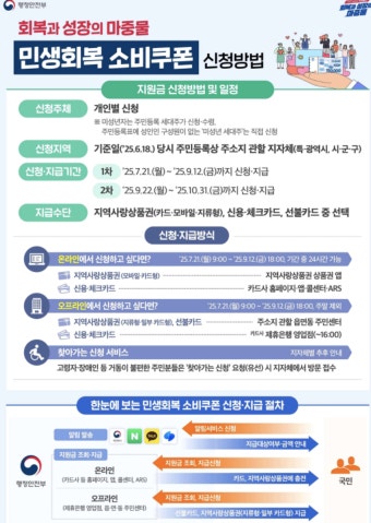 | 2025년 7월 21일 | 1차 민생회복 지원금 신청 시작 (출생 연도 끝자리에 따른 요일제 적용) | 정부 발표 |